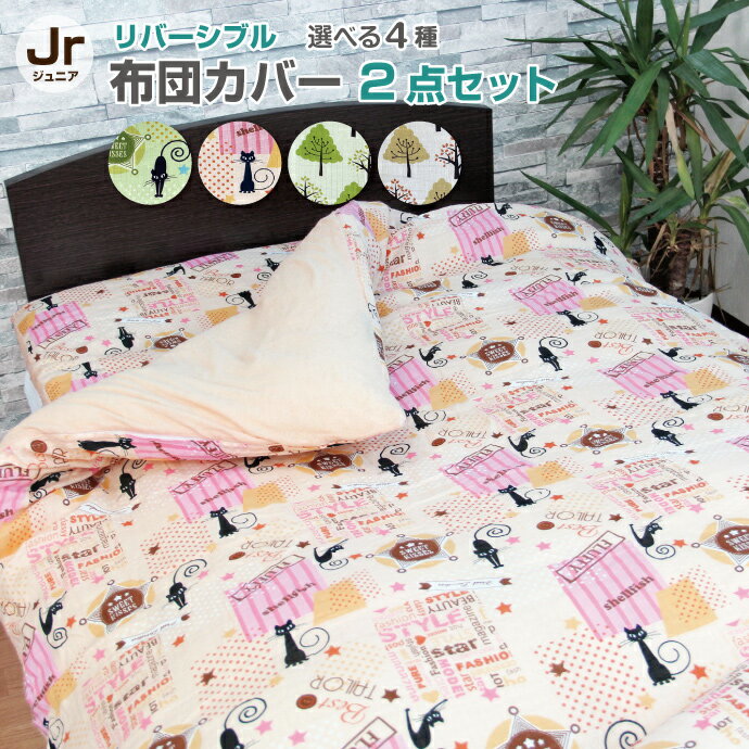 布団カバーセット 2点 リバーシブル ジュニア 掛布団カバー 敷布団カバー 2重ガーゼ生地 パイル生地 掛け 敷き 布団カバー 送料無料