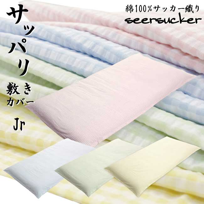 エントリーでポイントUP 綿サッカー織り 敷布団カバー セミシングル 90×185cm 日本製 綿100% ファスナー式 格子柄 ピンク ブルー グリーン イエロー おうち時間 父の日 ギフト