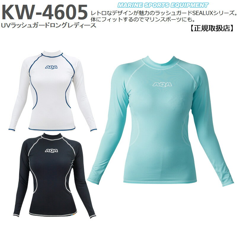 【ゆうパケット便全国送料無料】KW-4605 アクアAQA UVラッシュガードロングレディースラッシュガード 女性 長袖【2017モデル】ダイビングインナー日焼け防止ライトブルーホワイトブラックM/Lサイズ